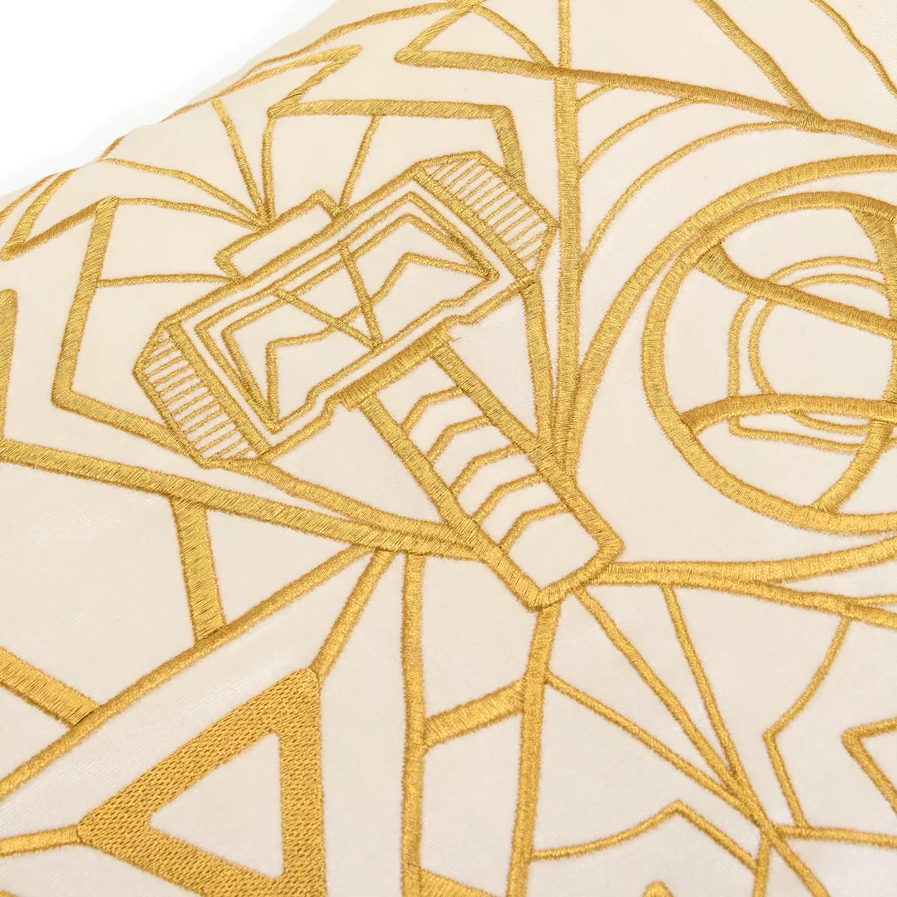 En plus d’ĂŞtre particulièrement Ă©pique, ce coussin Avengers, avec ces borderies dorĂ©es et ses logos Avengers stylisĂ©s, sera un alliĂ© de choix lors des batailles de polochons.
