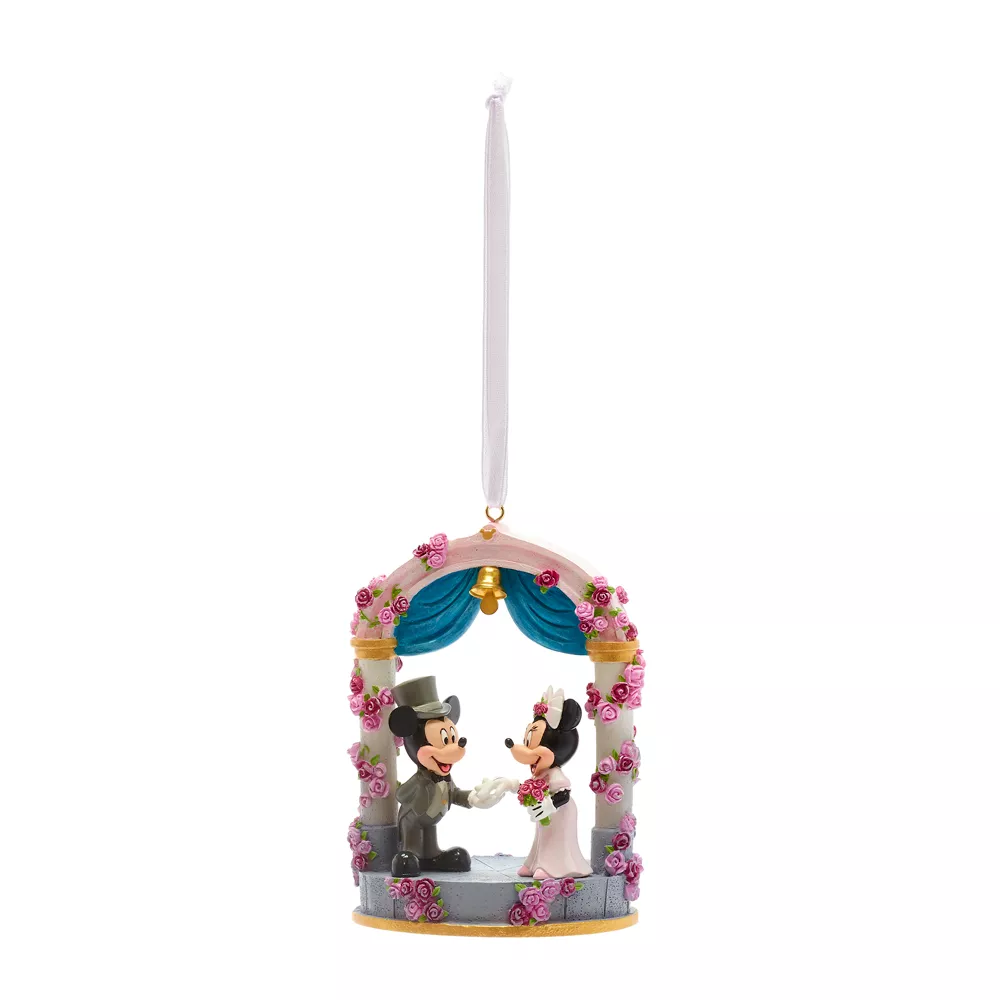 Envie d’un peu de romantisme ? Délicatement sculptée, cette décoration marque le plus beau jour de la vie de Mickey et Minnie.